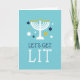 La carte de voeux drôle Hanoukka présente un arrière - plan bleu turquoise avec "Let's get lit" et une illustration de menorah éclairée avec des étoiles bleues et blanches. Customisez l'intérieur avec un message et une signature Hanoukka pré-imprimés.