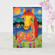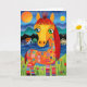Voici le "Lakeside Festival Horse : mignonne carte Anniversaire de enfant", une célébration vibrante et imaginative de la couleur et de la nature. Cette carte présente un cheval peint à la main avec un motif ludique, dressé contre un village pittoresque au bord du lac au coucher du soleil. C'est la carte idéale pour les enfants qui rêvent de lieux magiques et aiment les animaux, offrant une façon unique et joyeuse d'envoyer des voeux d'anniversaire.
