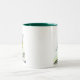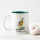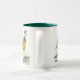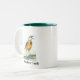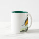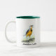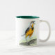 Alouette de pré des deux côtés de la tasse avec d'oiseau d'identification le dos dessus. L'intérieur de la tasse est vert forêt.