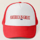 Rendez l'Amérique grande encore ? Maintenant vous pouvez laisser Donald Trump et ses défenseurs savoir, la cette "Amérique EST grand" avec ce casquette blanc et bleu rouge classique et patriotique de camionneur ! Choisissez de beaucoup de couleurs de casquette et saisissez le vôtre aujourd'hui !