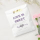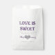 Un sac de faveur personnalisé avec la mention "L'amour est doux. Merci de partager notre journée spéciale." Personnalisé avec les noms de la mariée et du marié écrit sur un coeur, et la date mariage. Parfait pour les faveurs, les buffets de bonbons et plus encore ! Trouvez plus de modèles de sacs de faveur, y compris ce design dans d'autres couleurs! Cliquez simplement sur le lien vers ma boutique ci-dessous où il est dit Art Designed by Sara Winters Designs, puis cliquez sur "Favor Bags" sous Parcourir cette Boutique.
