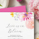 Amour est en fleur - Elégante florale Invitations de douche nuptiale Célébrez la future mariée avec ces invitations botaniques de douche nuptiale, parfait pour un brunch d'été avec la mariée. Avec ses fleurs roses vives et son étonnant design floral aquarelle, cette invitation donne le ton d'une réunion élégante et joyeuse. Elégant & Botanique - Présente des fleurs luxuriantes en rose, oranges et lavandes. Parfait pour n'importe quel brunch nuptial - Idéal pour une fête de jardin, une fête florale ou un brunch à bulles. Personnalisable et de haute qualité - Choisissez des invitations imprimées professionnellement ou un fichier numérique do-it-yourself. L'amour est en Fleur, et cette belle douche nuptiale aussi ! Découvrez ce thème de la douche nuptiale du jardin à l'adresse https://www.zazzle.com/collections/floral_mimosas_and_matrimony_bridal_shower_themes-119822754151821636 OEuvre originale d'aquarelle de Victoria Grigaliunas de Do Tell A Belle.