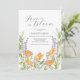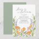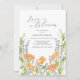 Célébrez votre jour spécial avec ces invitations florales aquarelles, mettant en vedette de délicates fleurs sauvages dans des tons orange et lavande, magnifiquement accentuées de feuilles de sauge botanique vertes. L'élégante écriture calligraphiée indique "L'amour est en fleur", ce qui fait de ces invitations de mariage bohèmes chic parfaites pour un brunch floral, un dîner de douche de mariée ou une douche de mariée botanique.