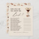 Ajoutez du plaisir à votre fête avec notre jeu de Fêtes des mariées Comment bien connaissez-vous la mariée? Avec de beaux designs, ce jeu invite les invités à répondre aux questions sur la mariée, de son film préféré à son travail de rêve. Parfait pour briser la glace et faire rire, c’est une façon délicieuse de voir qui connaît le mieux la mariée. Conçu avec élégance et charme, ce jeu assure une douche de nuptiale mémorable et engageante pour tous.