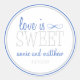 Love Is Sweet Étiquettes / Stickers (Royal Blue / Light Pale Pastel Silver Grey)...Cet amour amusant et chic est doux étiquettes / stickers sont idéaux pour les faveurs de mariage ou un bar à sucreries mariage / buffet plein de chocolat, suckers, lollipops, taffy, et sucre. Faites savoir à vos invités de ramener un régal avec eux pour se souvenir de votre mariage. Le design comprend un ensemble de polices fantaisistes avec les noms des mariés et des mariés ainsi que la date du mariage. Idéal pour un mariage sur le thème des bonbons. Idéal pour un mariage de destination. Parfait pour toute mariée ou mariée avec une dent sucrée. Idéal pour une douche nuptiale ou une soirée bachelorette. Entièrement personnalisable...il suffit de changer les noms et les dates et vos autocollants de faveur sont prêts à être utilisés. Disponible dans une large gamme de couleurs pour correspondre à vos couleurs mariages. Voir WindyCityStationery.com pour notre gamme complète de étiquettes "L'amour est doux" dans une large gamme de couleurs ainsi que les timbres-poste "L'amour est doux" assortis, cartes de remerciements, étiquettes d'adresse de retour, enregistrer les dates et plus encore.