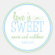 Love Is Sweet Étiquettes / Stickers (Light Pale Pastel Sky Blue / Mint / Sage Green)...Cet amour amusant et chic est doux étiquettes / stickers sont idéaux pour les faveurs de mariage ou un bar à sucreries mariage / buffet plein de chocolat, suceurs, lollipops, taffy, et sucre. Faites savoir à vos invités de ramener un régal avec eux pour se souvenir de votre mariage. Le design comprend un ensemble de polices fantaisistes avec les noms des mariés et des mariés ainsi que la date du mariage. Idéal pour un mariage sur le thème des bonbons. Idéal pour un mariage de destination. Parfait pour toute mariée ou mariée avec une dent sucrée. Idéal pour une douche nuptiale ou une soirée bachelorette. Personnalisable...il suffit de changer les noms et les dates et vos autocollants de faveur sont prêts à être utilisés. Disponible dans une large gamme de couleurs pour correspondre à vos couleurs mariages. Voir WindyCityStationery.com pour notre gamme complète de étiquettes "L'amour est doux" dans une large gamme de couleurs ainsi que les timbres-poste "L'amour est doux" assortis, cartes de remerciements, étiquettes d'adresse de retour, enregistrer les dates et plus encore.