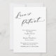 Si vos plans de mariage ont changé, cette carte simple et élégante pourrait être l'option idéale pour vous. Avec une police calligraphie de luxe, l'en-tête dit "L'amour est patient". Tout le reste est polyvalent et peut être modifié : changez la police de support ou l'arrière - plan à n'importe quelle couleur que vous voulez. Utilisez les champs modèle pour ajouter vos données personnelles. // 137 //