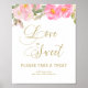 Table de desserts floraux ou panneau de table de faveurs lettre avec amour est doux, s'il vous plaît prenez une friandise. Vous avez également la possibilité d'ajouter un texte personnalisé, tel que .. avec amour de la future Mme [nom de famille]. Ce design aquarelle féminin comporte des fleurs roses et dorées avec une touche de verdure. Il présente une élégante lettre manuscrite et une typographie en or, avec "Amour" et "Doux" écrits à la main en calligraphie tourbillonnante. Veuillez parcourir ma boutique pour trouver des articles assortis.