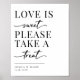 Simple écriture minimaliste noir blanc L'amour est doux signe de table mariage, affiche.