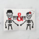Un faire-part moderne et amusant "save the date" pour un mariage à thème éffrayant ou halloween ! Colorée dans les tons rouge, noir et blanc, cette carte présente un cercueil sur le devant et un squelette amoureux à l'intérieur. Mettez vos vies uniques au repos avec toute la suite de design mariage "Love Never Dies" ! Cliquez ci-dessous pour voir les produits correspondants !