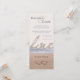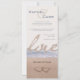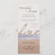 Cette mince faire-part de mariage présente une photo de deux coeurs au-dessous d'une vague d'océan sur le sable. Le mot "amour" dans une police de script sépare la photo du reste de la simple invitation couleur crème, où des mots bleu océan foncé dans une police classique style gravure invitation invités à votre mariage. Tous les textes sauf "love" sont personnalisables sur l'invitation.