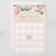 Élégant et stylé jeu de bingo pour future mariée lors d'une fête de mariage. Jeu amusant à jouer lors de votre fête de mariage. Le design présente un style moderne avec nos roses aquarelles rose poudré et verdure peintes à la main avec une grille de bingo en forme de cœur blanc. La calligraphie élégante de couleur or et la palette de couleurs rose poudré créent un look chic moderne. Œuvre d'art par Moodthology Papery.