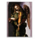 An Angel in Green with a Vielle (c. 1490-1508) de l'artiste Léonard de Vinci (1452-1519) est un portrait religieux de la Renaissance vintage de l'époque, avec un ange faisant de la musique jouant un instrument de musique, peint très probablement par un associé de Léonard de Vinci. Ce tableau, ainsi que "Un Ange en Rouge avec une Lute" et "Vierge des Rochers" sont des panneaux qui viennent du même retable fait pour la Confraternité de l'Immaculée Conception pour leur église, San Francesco à Milan.