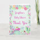 Ce carte de remerciements de baby shower est orné de lanternes et de fleurs de cactus aquarelles et de feuillage succulent. Personnalisez-le avec un nom sur le devant ainsi qu'un message spécial à l'intérieur de la carte. Cette carte fait partie d'une collection qui comprend une gamme d'autres produits de baby shower correspondants. Visitez les pages de collection de notre magasin pour voir la gamme complète.