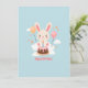 Lapin Assis Sur Les Nuages Avec Un Gâteau Et Des Ballons