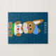 Lapin avec puzzle casquette. Nom de l'enfant personnalisé.