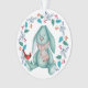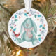 Sur cet ornement, un adorable petit lapin en peluche bleu aux oreilles disgracieuses porte une écharpe d'hiver, assis à regarder un oiseau cardinal rouge perché sur son pied. Le lapin est entouré d'une feuille bleue et d'une couronne de baies rouges. Le dos de l'ornement tient votre texte personnalisé dans cinq champs faciles à modifier. Idéal pour n'importe quel enfant, surtout un tout-petit ou un bébé.
