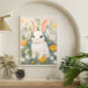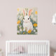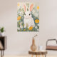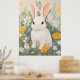 Lapin Blanc Parmi Fleurs de Printemps Affiche