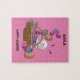 Lapin de Pâques coloré en panier avec puzzle d'oeufs et nom personnalisé.