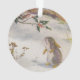 Belle, détaillée illustration vintage d'un lapin observant un merle sur une branche de houx.