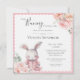 Un "lapin" a une invitation de baby shower de lapin lapin bébé. Adorable lapin dessiné à la main dans un dormeur rose. Les couleurs sobres et douces donnent le ton d'un baby shower sucré. Une invitation simple et douce à cet événement spécial. Le cadre coordonné bleu à pétoncles finit de cet adorable invitation.