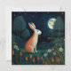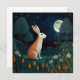 Un lapin orange et blanc profite du clair de lune dans un lit de fleurs.