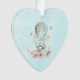 Un ornement avec une charmante illustration d'un petit lapin qui roule dans une montgolfière ornée d'un joli ruban rose, accompagné de fleurs et de papillons. Un arrière - plan bleu pastel lui donne une atmosphère de rêve vintage.
