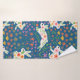 Apportez un charme ludique à votre salle de bain avec ce ensemble de serviettes de bain fantaisie avec des lapins blancs de Pâques entourés de fleurs orange, rose et rouge vibrantes avec des accents feuillus sur un arrière - plan bleu marine profond. Ce design enchanteur ajoute une touche joyeuse et artistique à votre décor printanier ou pascal