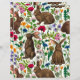 Lapins et flore boisée dessinés à la main, fougères, champignons, beriies et insectes