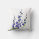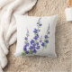 Coussin imprimé à l'aquarelle originale Fleurs de Delphinium Larkspur en bleu, violet et vert sur arrière - plan blanc.