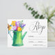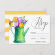 Invitations de mariage de style rustique branché RSVP avec une arrosoir pleine de tulipes et de fleurs et un motif rayé blanc et jaune au verso de la carte. Ces invitations sont parfaits pour une fête de campagne, de ferme, de jardin ou de jardin ou de style mariage. Ce design est également disponible pour d'autres événements. Pour une demande personnalisée, veuillez nous contacter par l'intermédiaire du magasin