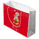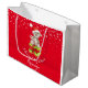 Personnalisez cet grand art mignon d'ours de koala de sac de cadeau sur un arrière - plan étoilé rouge avec votre propre nom et la salutation, lit actuellement le Joyeux Noël Bronwyn. Idéal pour vos cadeaux de Noël à la famille ou aux amis et des entreprises liées aux ours de koala, animaux marsupiaux ou liées à l'Australie. Ours de koala lunatique mignon jugeant un sucre de canne peint dans l'aquarelle et conçu par Sarah Trett.