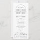 Un programme de mariage déco sur le thème de la ligne d'horizon pour un mariage qui se déroule dans la belle et excitante ville de Las Vegas, Nevada. Cette carte de programme de mariage présente une illustration stylisée de l'horizon unique de la ville avec son nom en dessous. Il se repose sous vos informations de jour de mariage dans un style ouvert assorti. À l'envers, il y a une couleur gris nickel douce avec plus de détails mariages en texte blanc pour compléter l'avant. Une façon élégante d'accueillir les gens de l'extérieur dans votre ville, tout en leur donnant des informations utiles sur votre série d'événements de cérémonie mariages.