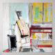 Peinture à médias mixtes. Taille du carré : 50 x 50 cm. Toujours avec moi, juste un clin d'oeil à ma "formation" d'étudiant en art à Aix-en-Provence (1982). Chevalet, tabouret, lumière du sud de la France. Studio du peintre, chevalet et tabouret, lumière de la Provence. Juste pour se souvenir des jours heureux.