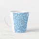 Cette tasse en latte en céramique est illustrée d'un imprimé fleuri bleu et blanc. Customisez cet objet ou achetez tel quel.