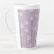 Sip in rustic charm with the Gingham Orchard Latte Mug. This cozy and whimsical design features vertical brushstroke stripes in soft shades of pink, gray, and blue, layered with white gingham silhouettes of apples and flowers. The combination of painterly textures and classic gingham patterns creates a nostalgic yet modern feel — perfect for mornings, study breaks, or gifting.