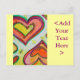 Les coeurs jaune, pêche et orange forment deux coeurs concentriques qui glissent vers l'autre bout à bout. Les points de couleur jaune pâle sont comme des confettis entre les coeurs. La peinture à l'aquarelle a une légère couche d'or et de rose sur le dessus. Personnalisez cette carte postale avec votre propre texte et vos propres images.