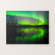 Lumières du nord reflétées sur la surface calme du lac Laberge, territoire de Yukon, Canada