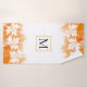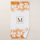 Lavage à l'eau orange de la feuille d'érable blanche moderne et ensemble de serviettes de bain monogramme. La serviette de bain est munie d'une bordure de feuilles d'érable blanc sur le lavage à l'aquarelle orange et de votre monogramme dans un cadre avec contour placé au centre. La serviette à main présente un motif des feuilles d'érable et le linge est recouvert d'une goutte d'eau orange.