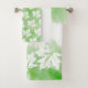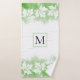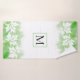 Lave-linge vert feuille d'érable blanc moderne et ensemble de serviettes de bain monogramme. La serviette de bain est munie d'une bordure de feuilles d'érable blanc sur le lavage à l'aquarelle verte et de votre monogramme dans un cadre avec contour placé au centre. La serviette à main présente un motif des feuilles d'érable et le linge est recouvert d'une écaille verte.