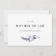 À ma belle-mère sur ma carte de mariage. Une carte simple et élégante pour écrire un message personnel et sincère pour votre belle-mère le jour de votre mariage, avec un design classique et élégant lavande aquarelle, parfait pour un mariage campagnard à ressort fleuri. Vous pouvez ajouter un message au dos ou le laisser vide si vous préférez écrire votre message à la main plus tard.