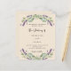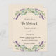 Arrière - plan beige décoré de fleurs de lavande et de végétation d'eucalyptus. Personnalisez et vos noms et détails. Retour : ajoutez l'url de votre site Web mariage au code QR pour plus de détails et/ou RSVP. 1 feuille = 1 invitation imprimé bord à bord.