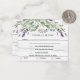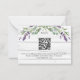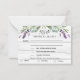 Bois blanc rustique comme arrière - plan, texte noir. Décoré de fleurs de lavande et de verdure d'eucalyptus. Personnalisez et ajoutez la réponse par date et sélections de menu. Retour : ajoutez l'URL de votre site Web mariage au code QR pour plus de détails et/ou RSVP