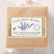 Étiquette en ivoire pâle avec jante dorée et bordure en pointillé bleu. Illustration de lavande vintage avec abeille. Fabriqué avec le logo Love et Gold Heart,