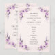 Célébrez votre journée spéciale avec ce programme de mariage rêveur aquarelle. Des arrangements luxuriants de roses de lavande avec un arrière - plan roux, agrémentés de touches de verdure, semblent peints à la main sur la carte. L'oeuvre douce et texturée crée une esthétique sereine et féminine, tandis qu'une disposition de texte moderne et épurée offre un contraste poli. Associée à une enveloppe lilas ou blush et à un ruban à ventre en option, cette suite donne un ton fantaisiste et romantique à vos invités. Ce faire-part de mariage fait partie d'un ensemble complet.