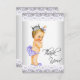 Carte de remerciements de lavande et de baby shower gris avec adorable princesse vintage petite fille portant lavande violet pantalon et chaussons avec une couronne d'argent et l'arc violet dans ses cheveux sur un élégant arrière - plan lavande et dentelle grise. Ce carte de remerciements de lavande et de baby shower gris mignon est facilement customisé en ajoutant votre message, ou laissez vide pour ajouter votre message manuscrit à leur arrivée.