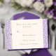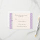 Carte de réponse RSVP en motif tourbillon florentin de classe simple en couleur violet lavande. Imprimé motif a des accents graphiques rubans à l'état brut sur un arrière - plan blanc cassé, tous formatés et prêts à être édités avec vos propres détails dans l'éditeur de texte Zazzle facile. Disponible en 6 couleurs. Invitation correspondante, enregistrer les cartes de date, les cartes de tente de table et les enveloppes à motifs d'impression interne correspondants également disponibles séparément dans cette collection. *Prévoir des semaines supplémentaires pour les enveloppes personnalisées assorties.