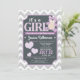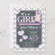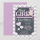 Joli, lavande violet et gris ours en peluche invitation baby shower. Arrière - plan motif en chevron gris et blanc. C'est une fille !