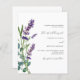 Un arrière - plan blanc décoré d'une grande fleur de lavande et d'une végétation d'eucalyptus. Personnalisez et vos noms et détails. 1 feuille = 1 invite imprimé bord à bord.