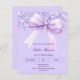 Un lavande, arrière - plan violet, décoré d'un grand arc et de confettis. Personnalisez et ajoutez un nom et des détails du parti. 1 feuille = 1 invite imprimé bord à bord.